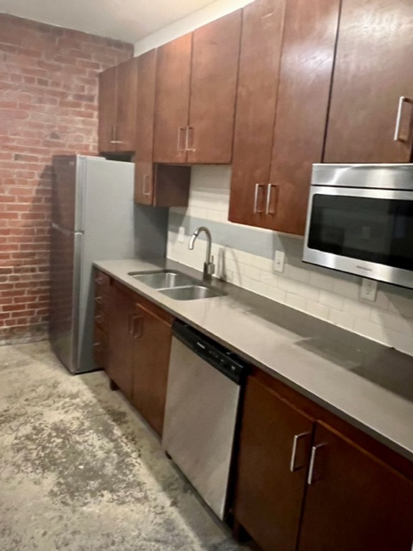 Inside our updated apartments, you'll find gorgeous quartz counters, stainless steel appliances, polished concrete floors, and amazing details like our exposed wood ceilings and rustic brick walls.